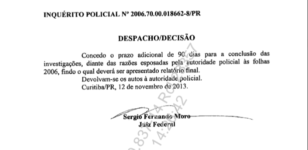 | Após sete anos de investigações, depois de prolongar por 120 dias, Moro concede mais 90 dias |